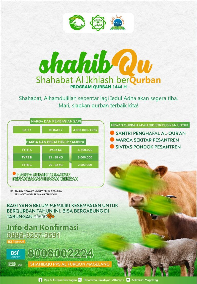 بسم الله الحمد الله والصلاة والسلم على رسول الله Allah Subhanahu Wa Ta’ala berfirman: فَصَلِّ لِرَبِّكَ وَا نْحَرْ “Maka laksanakanlah shalat karena Tuhanmu, dan berqurbanlah (sebagai ibadah dan mendekatkan diri kepada Allah).” (QS. Al-Kautsar : 2) Tidak terasa, sebentar lagi…