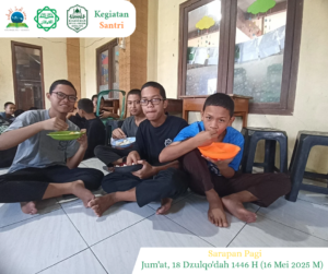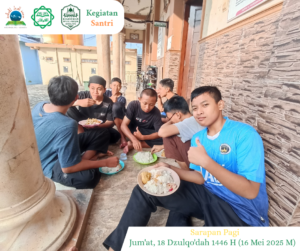 π Jum’at, 18 Dzulqo’dah 1446 H | 16 Mei 2025 MMomen pagi yang sederhana, namun penuh makna. Kebersamaan dalam sarapan bukan hanya soal makan, tapi tentang cinta, ukhuwah, dan semangat menjalani hari-hari sebagai santri.
